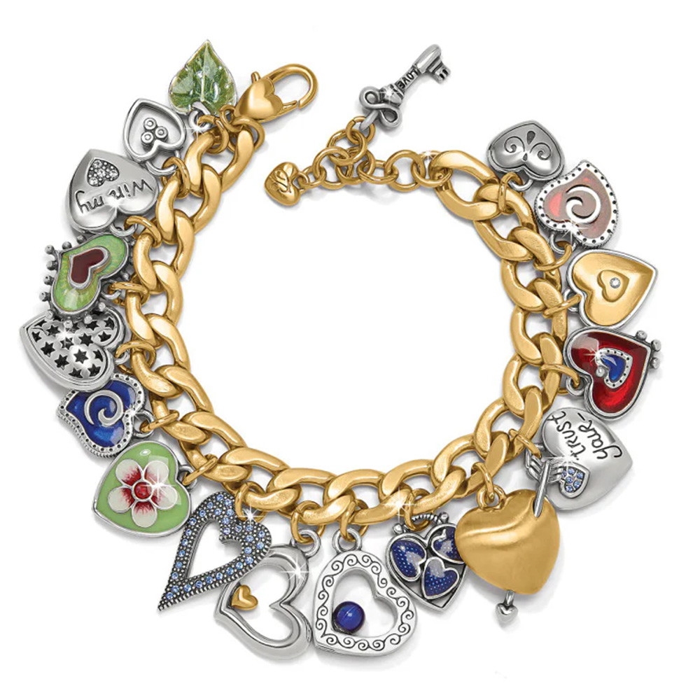 17 timeless Brighton hearts have become ''charms'' on this modern chunky chain that is a matcher to our beloved One Heart Collection. Whether colorfully hand-enameled, two-tone, silver, gold or accented with hand-set crystals, each one is a symbol of love.