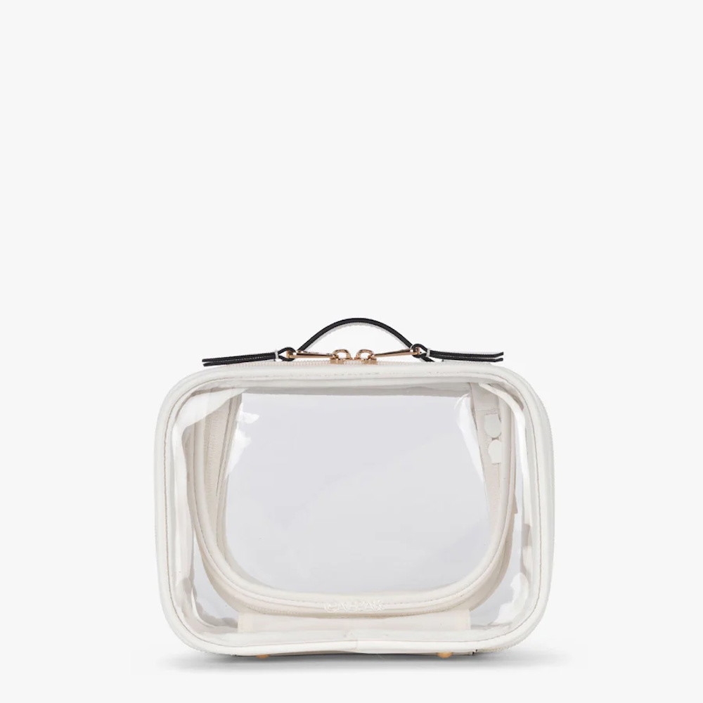 Designed to hold all your essentials and more, this small makeup bag features two compartments and comes in multiple colorways. With its handy lay-flat carrying handle, it's the perfect travel or everyday accessory for keeping your essentials organized and easily accessible.
