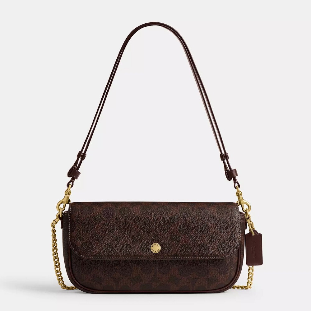 A versatile style for day and night, our flap-front Brook bag has a short gleaming chain strap and a convertible leather strap to wear as a crossbody or doubled up for a shorter, dressier look. With space to hold all the essentials, the rounded Signature canvas and refined leather design features a convenient outside pocket and inside multifunction pockets for easy organization.