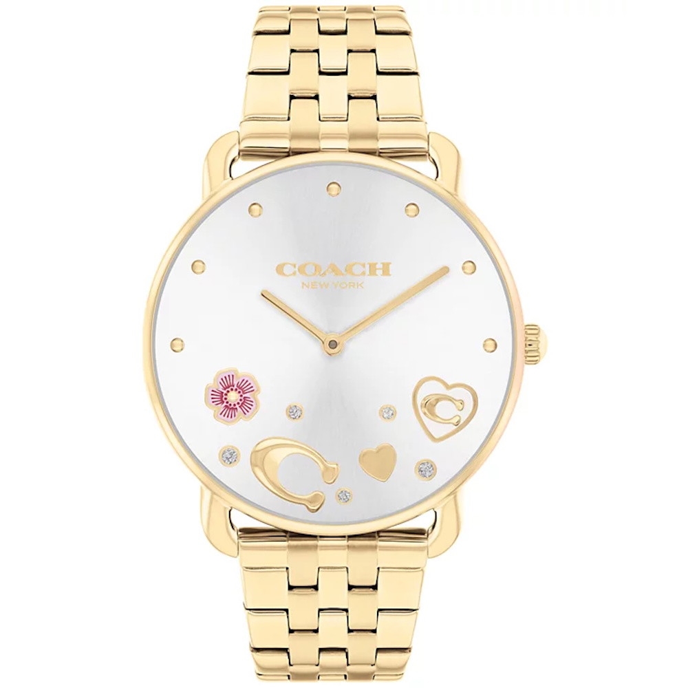 • Silver/White sunray dial with polished dome markers and a floating scatter of iconic COACH charms