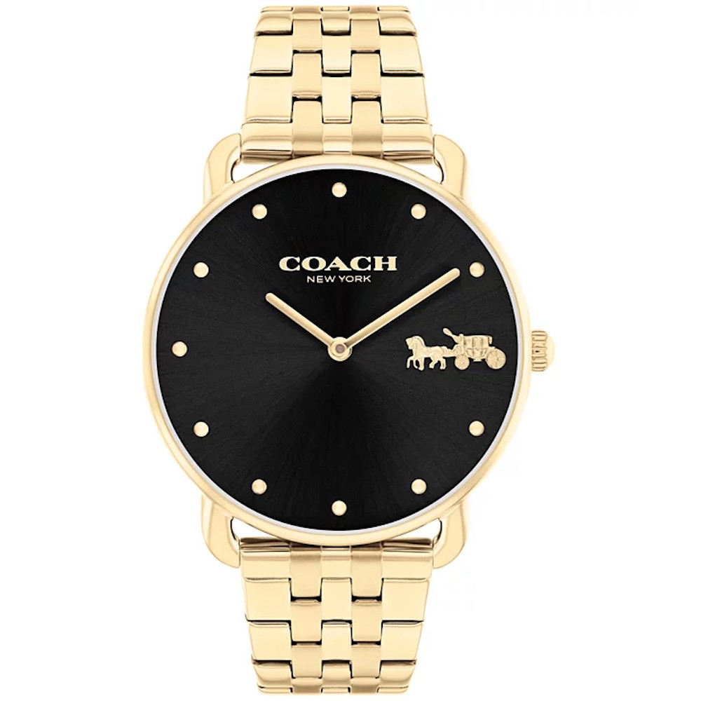 • Black dial with two hands and dome indexes &the iconic COACH horse and carriage motif at 3 o'clock
