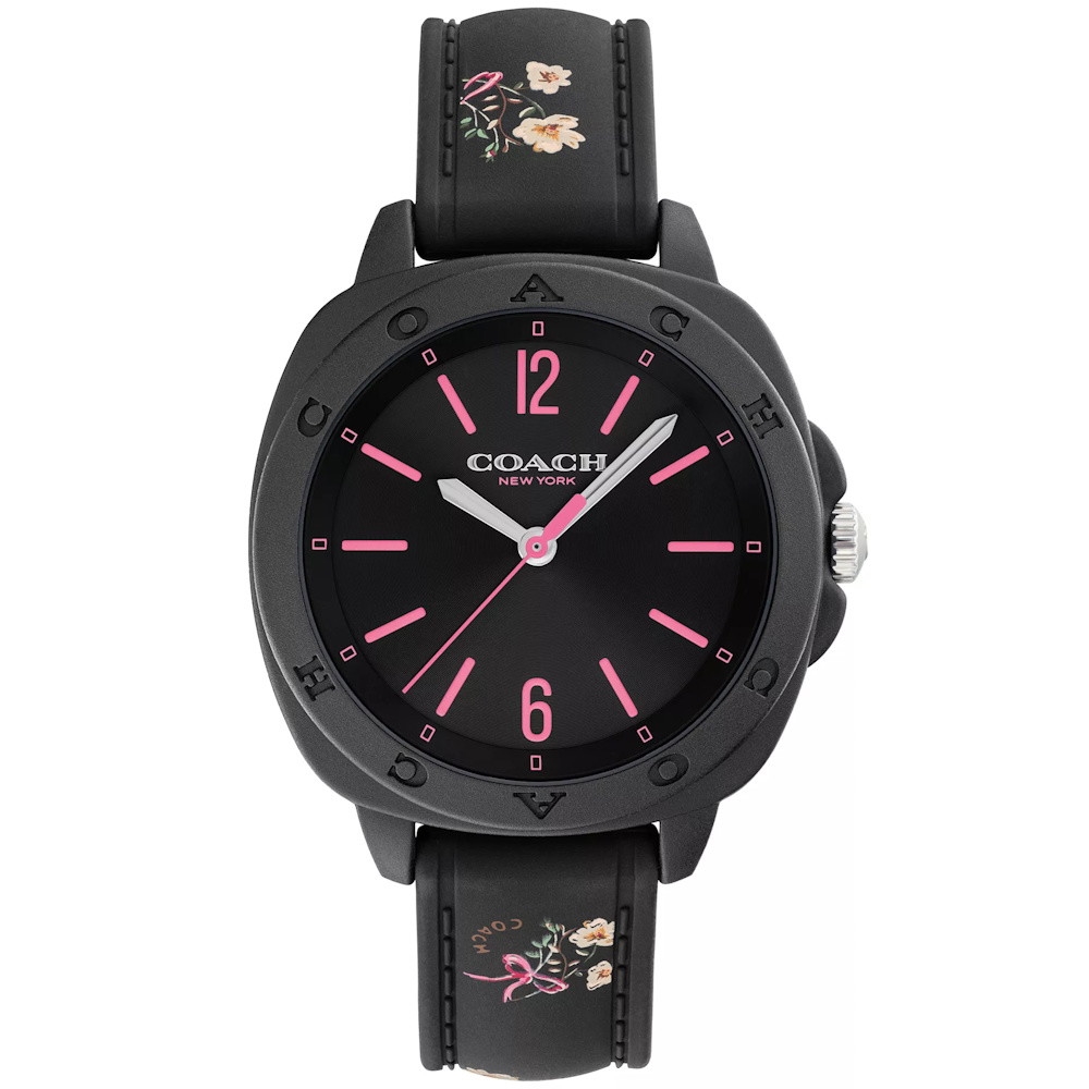 Coach Kitt Watch with Floral Print Strap and Black Dial