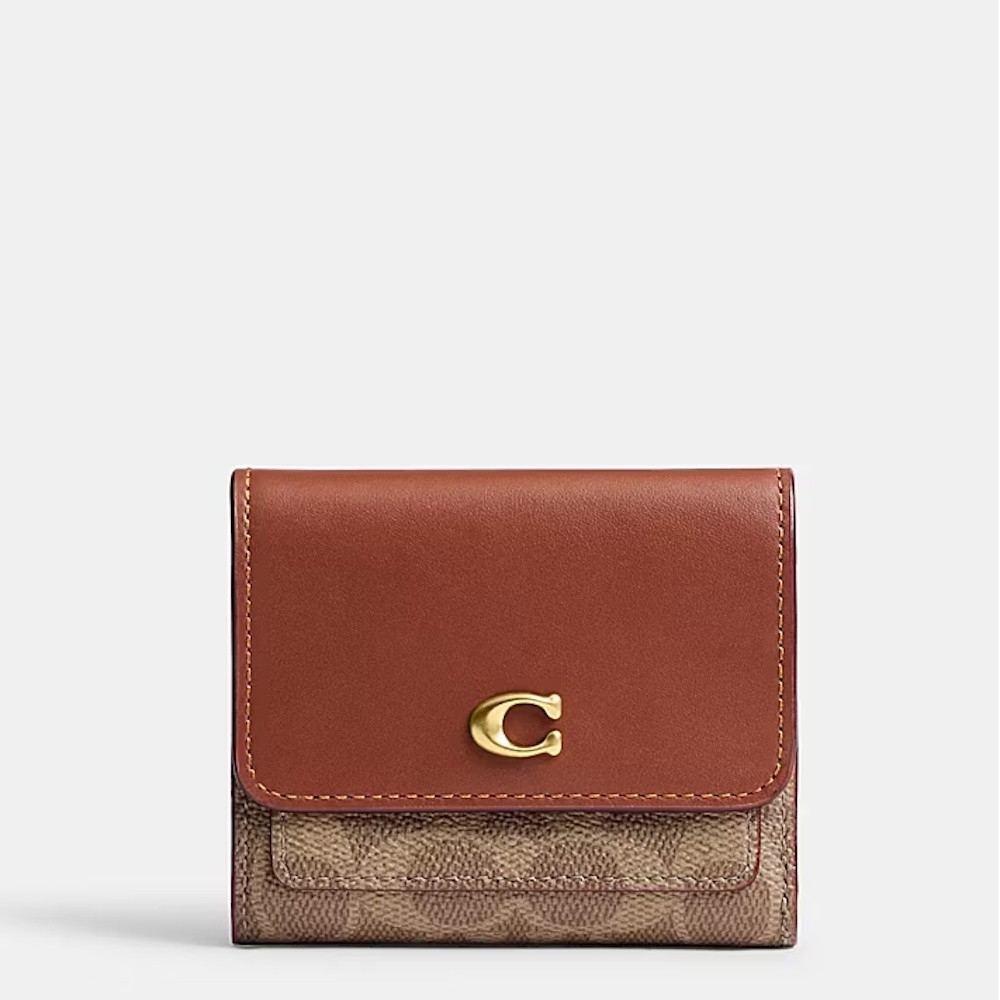 Coach Signature Mila Small Flap Wallet - Tan Caramel