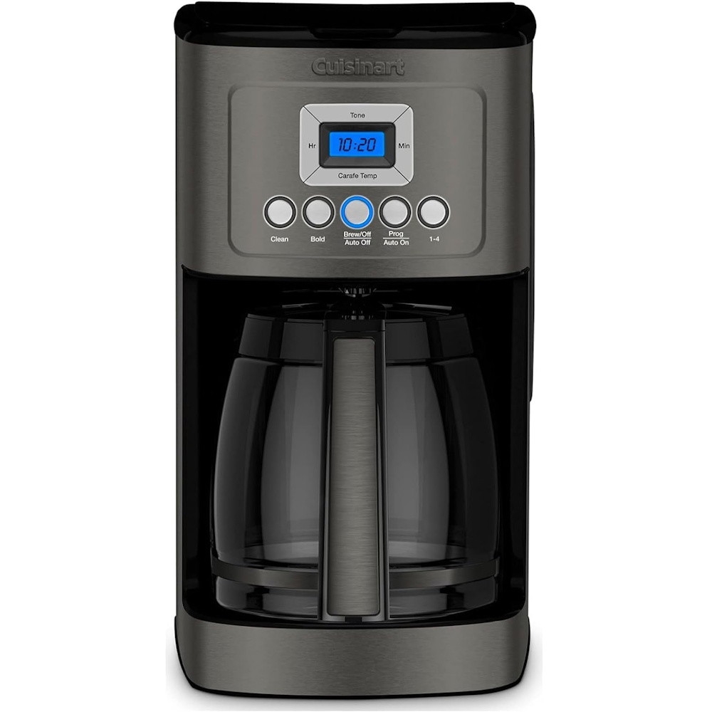 Turn up the flavor and the temperature on your coffee with the Cuisinart® 14-Cup Programmable Coffeemaker! Using our cutting edge coffee technology, the 14-Cup Programmable Coffeemaker can give you hotter coffee without sacrificing taste. Choose a regular or bold flavor profile and set the brew-time up to 24 hours ahead so your next cup is ready when you are. The backlit LCD is easy-to-read, a ready tone can be turned on or off, and an indicator light signals when it’s time to decalcify.