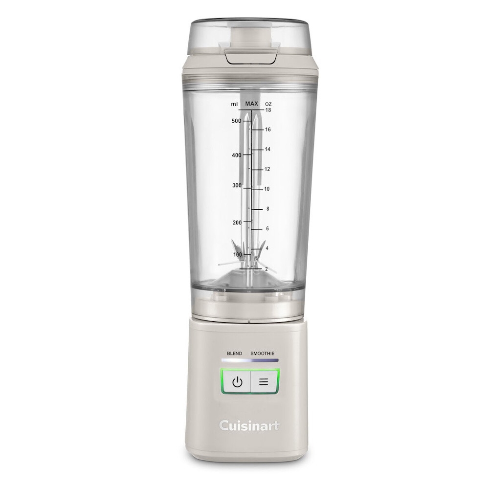 Make smoothies, protein drinks, and other nutritious beverages in seconds with this innovative portable blender for active lifestyles. Ideal for blending fresh drinks at home or while traveling, it?s the mini blender that combines powerful performance with portable convenience. Designed with a snap spout lid and carrying loop, this cordless single-serve blender lets you blend up to 18 oz directly into the travel cup for beverages to go. It even comes with a charging cable and produces up to 20 blends on a single charge. Blend anywhere, anytime, with the power to turn ice and frozen fruit into quick, refreshing drinks. The lid and travel cup are top-rack dishwasher safe for effortless cleaning. Features: