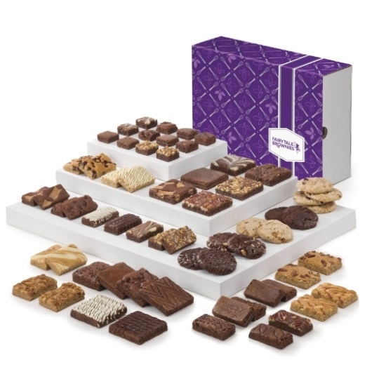 Go above and beyond with a plentiful portion of every tasty treat baked at the Fairytale Brownies bakery! With 12 enchanting flavors of fudgy Belgian chocolate brownies, six different types of Fairytale Cookie and all six varieties of buttery Fairytale Bar, everyone is sure to find a favorite. Sized for a party, each treat inside this giant box is individually wrapped for freshness and easy sharing. All-natural and certified kosher.