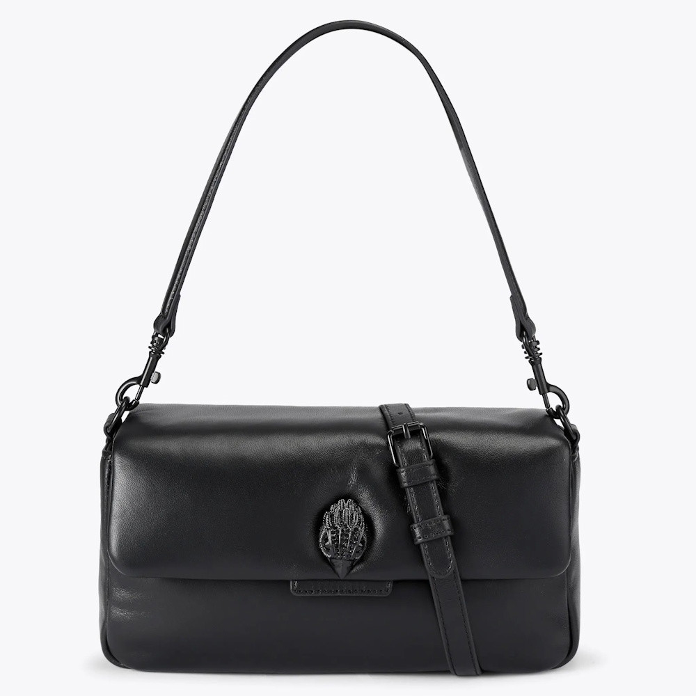 This Leather Oxford Purse is crafted from a soft black lambskin leather. There is a black metal eagle head with crystals sat on the front flap.Features: