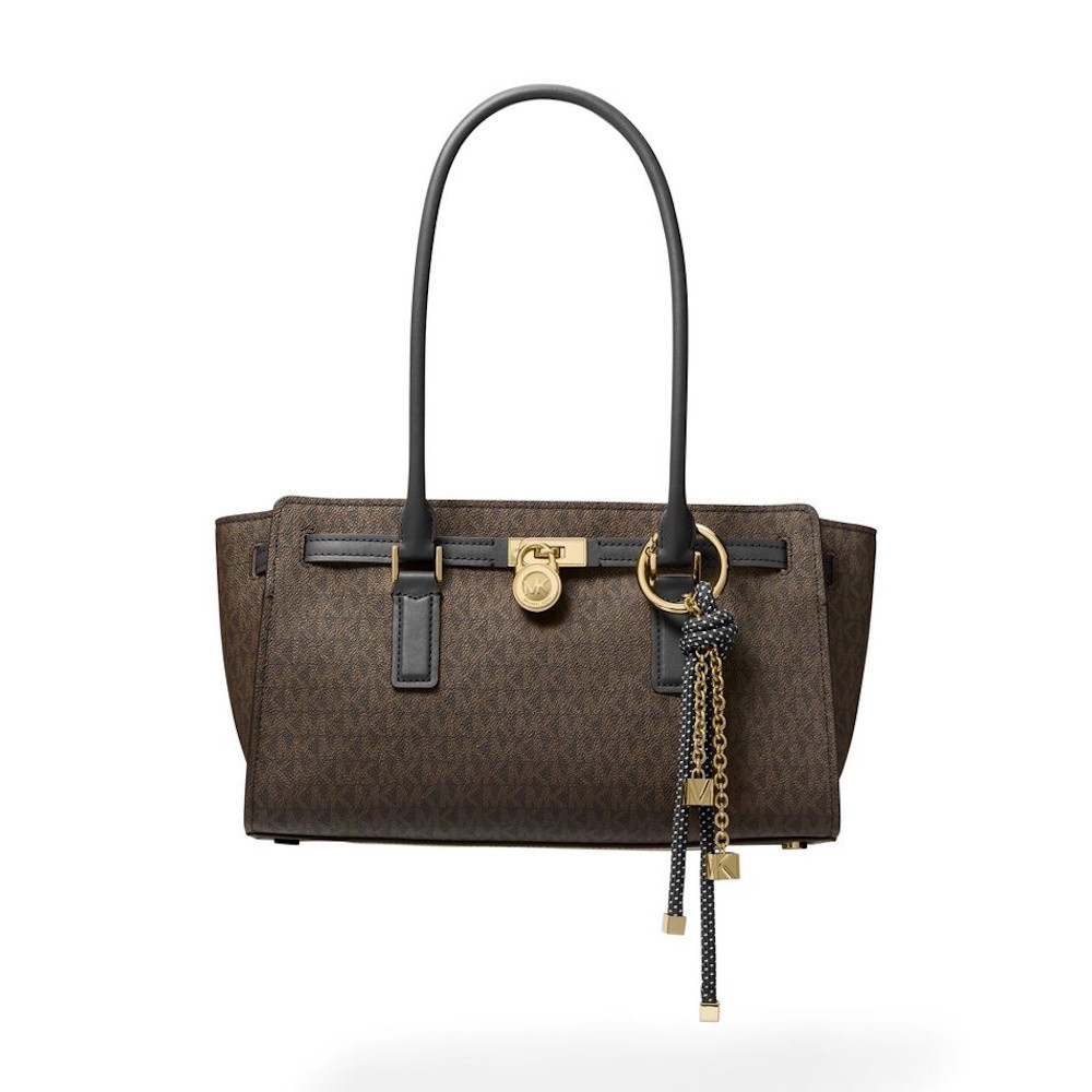 'I always feel that a perfect classic never goes out of style. The re-introduction of our Hamilton bag proves that good design is timeless,'' says Michael Kors. The heritage-chic Hamilton Moderne is an eye-catching carryall you’ll love for years to come. This Signature logo-print style features side gussets and a smooth belted trim that’s finished with a polished chain-link pendant for decorative appeal. Carry yours all day long thanks to its extra-long shoulder straps.