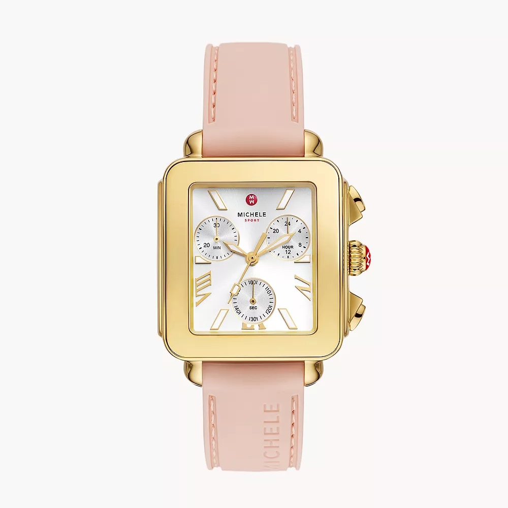 Michele Deco Sport Chronograph Gold-Plated Pink Silicone Watch