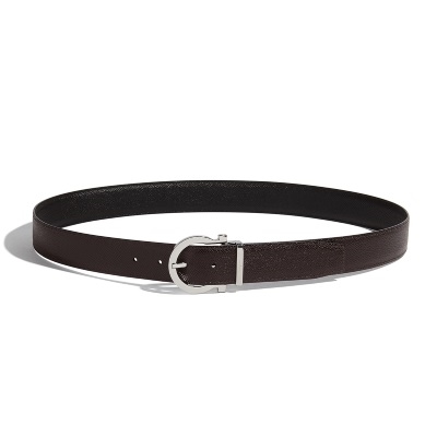 This refined Ferragamo Men's Adjustable and Reversible Belt is a strong and masculine way to punctuate an outfit. Features reversible design with black calfskin on one side and hickory calfskin on the other, and a nickel Gancio buckle. Size: 46.