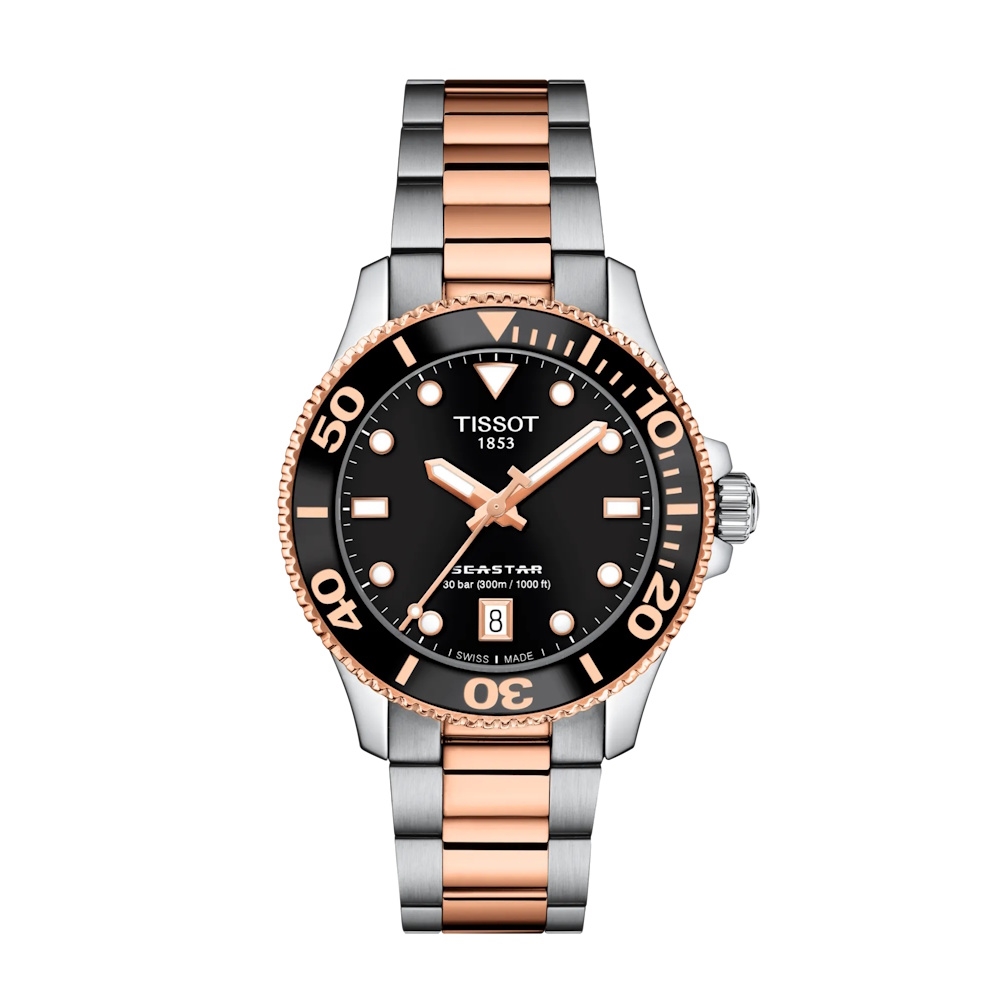 Tissot Seastar 1000 Quartz 36mm Two-Tone Watch with Black Dial
