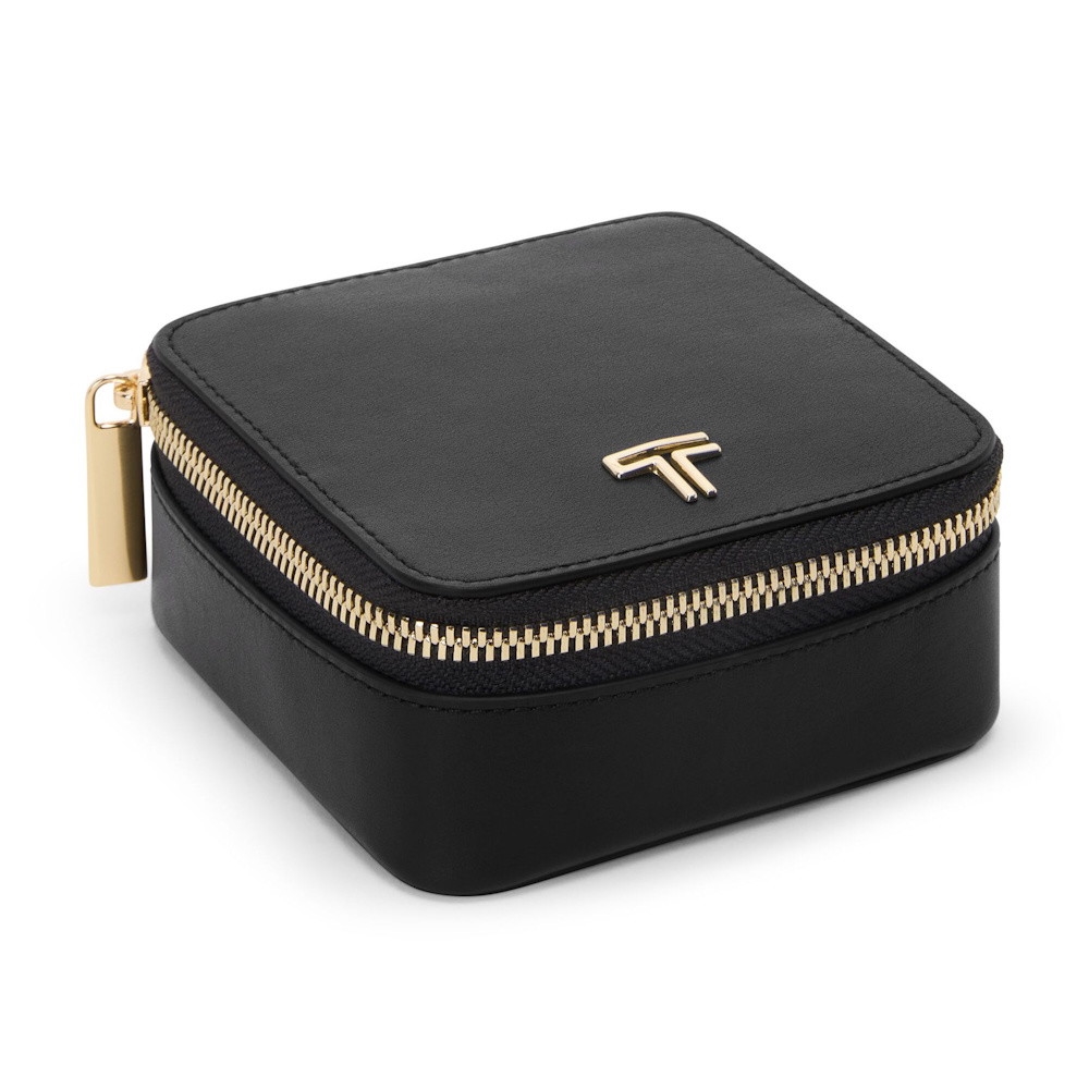 This luxe leather jewelry case is designed to organize earrings, necklaces and rings when traveling or on-the-go. This style makes the perfect gift.