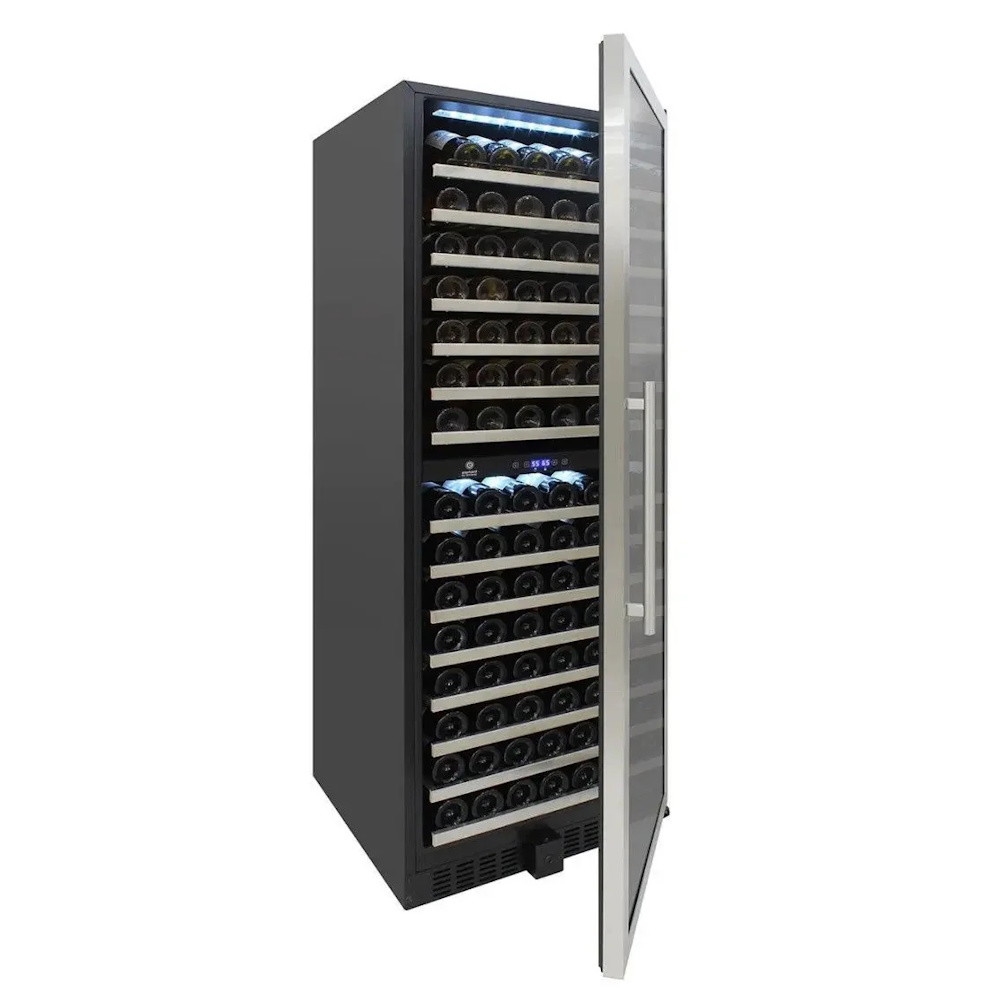 • This wine refrigerator allows you to maximize your storage capacity with 13 full size shelves and two half size display shelves with enough room to store approximately 155 standard size bottles (750 mL) in the upper and lower zones combined.