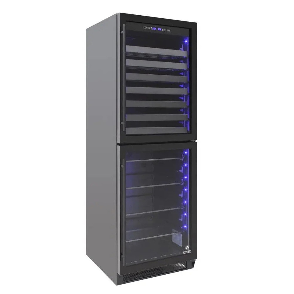 • This unit features two dual-paned glass doors with recessed handle that separate the wine storage in the upper zone and beverage storage in the lower zone.