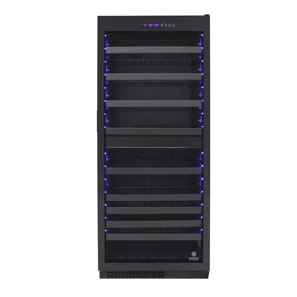 • Outfitted with 9 Ouzo™ sliding wire racks with black lip, this wine refrigerator can hold comfortably approximately 228 of your preferred choice of red, white, or sparkling wines.