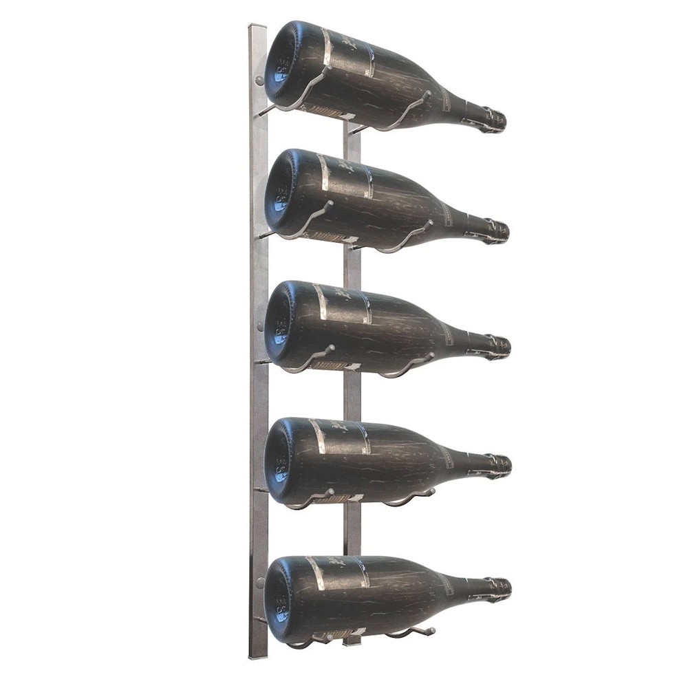 At last--a new wall-mount metal wine rack option for those larger bottles! Designed by Epicureanist. This 5-bottle magnum metal rack can be fastened to almost any wall or inside of a wine cabinet. The patented design features sturdy metal construction that artfully displays your bottles with the labels visible for show. These wine racks are specially designed for larger wine bottles or champagne bottles. This unique wire rack consists of two identical pieces that cradle each end of the body of your bottle for a dazzling display.