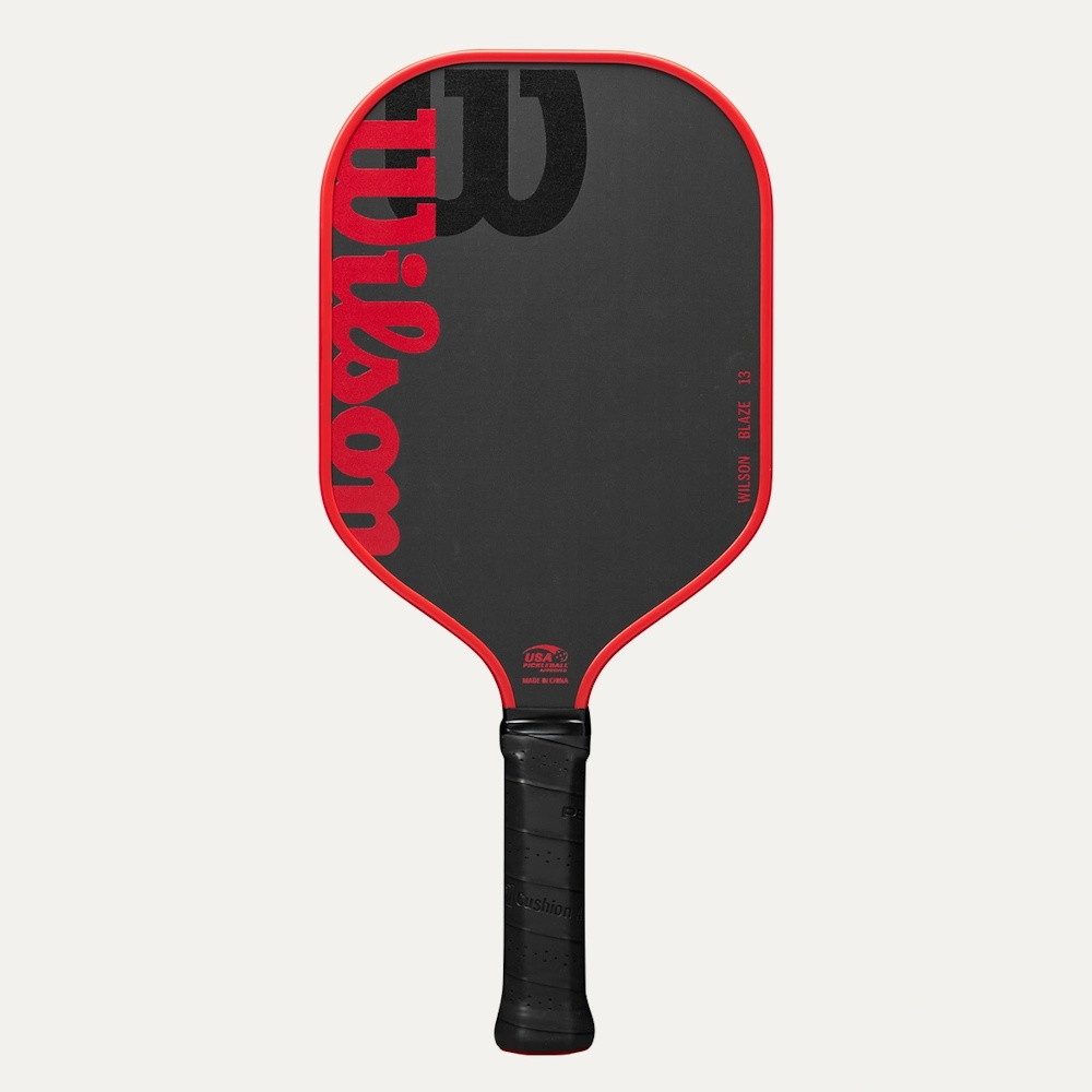 Maximize power while maintaining control on the pickleball court. Wilson's Blaze 13 Pickleball Paddle is ideal for competitive intermediate to advanced players who can place the ball with precision and are looking to add some power to their shots. The elongated shape contains a more concentrated sweet spot with great responsiveness, and its extended handle length is ideal for players who hit with two-handed backhands. The hybrid face features raw carbon fiber with a fiberglass base, resulting in maximum power coupled with enhanced spin.