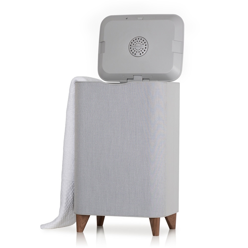 Spa-level warmth, modern design, and intuitive controls create the perfect spa day right at home. The stainless-steel, rust-resistant 24L tub evenly heats towels, robes, and loungewear, while the digital panel lets you choose your heat, set a timer, or schedule perfectly warm towels up to 24 hours ahead. A removable steaming rack, four interior hooks, and hidden cord storage keep things neat and tidy. The linen-wrap exterior and walnut-print legs add a refined, furniture-like finish, making it the perfect addition to any space. Features: